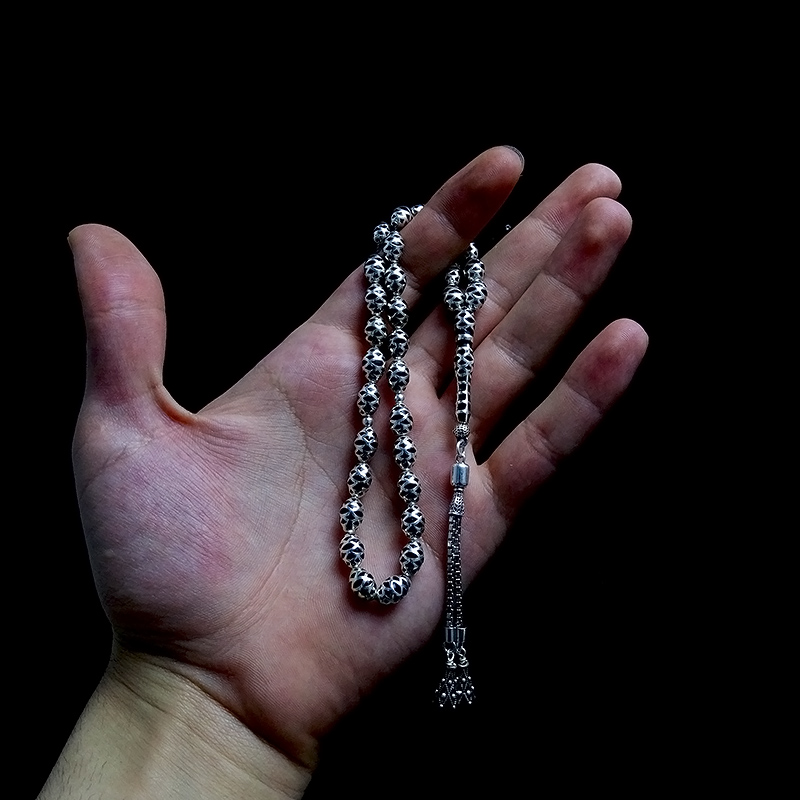 Oltu Taşı Tesbih Eskitme Model Gümüş Nakkaş Tasarım