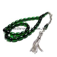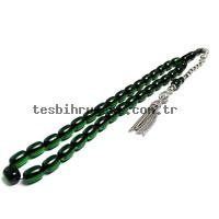 Bafon Tasarımlı Yeşil Renk Sıkma Kehribarı Tesbih