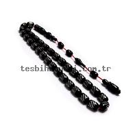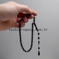 Çeşmi Bülbül İşlemeli Siyah Renk Ateş Kehribarı Tesbih