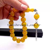 Damarlı Sarı Kehribar Tesbih Efe Maskot Model