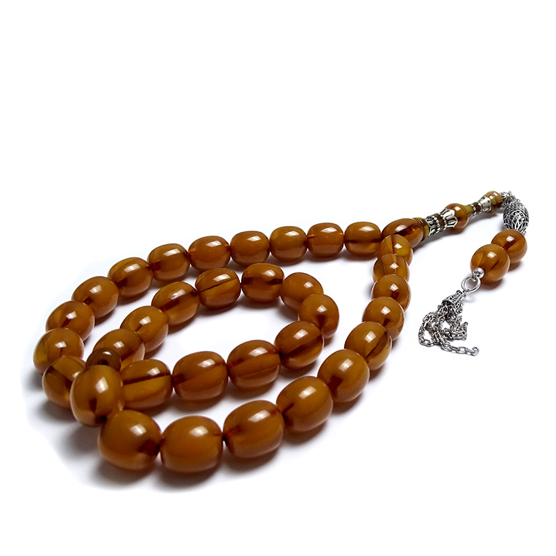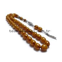Eskitme Kesim Gümüş Tasarımlı Eskitme Sıkma Kehribarı Tesbih