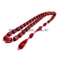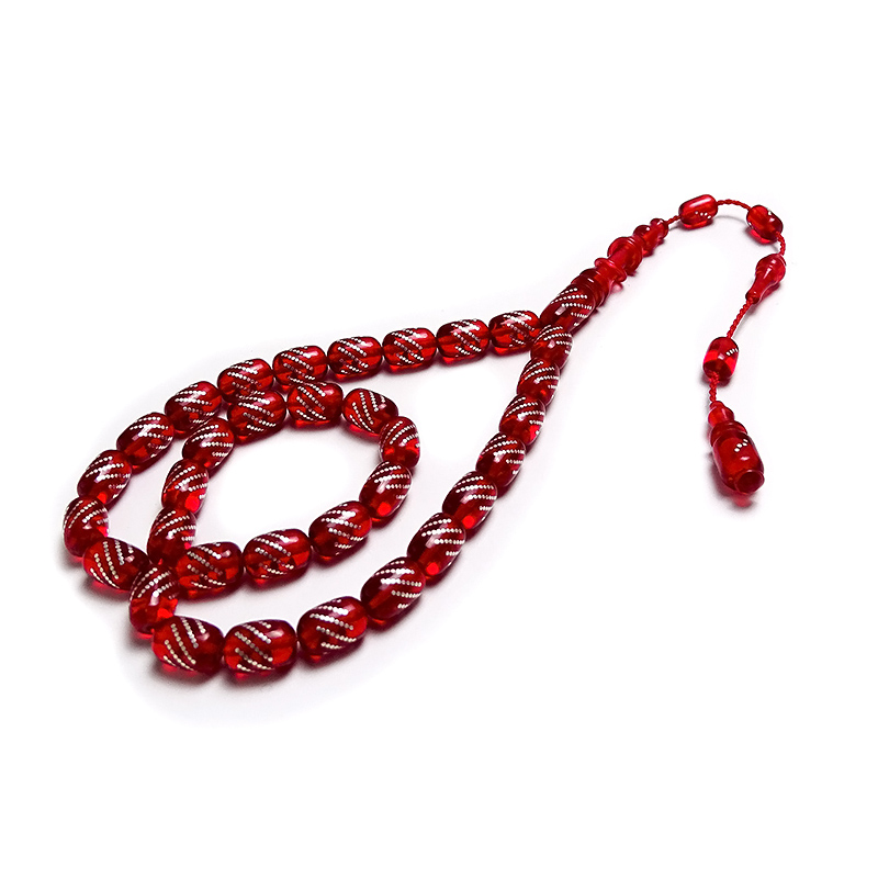 Gümüş Çakımlı Kapsul Kesim Kırmızı Renk Kehribar Tesbih