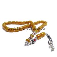 Gümüş Tasarımlı Kapsul Kesim Eskitme Sıkma Kehribar Tesbih