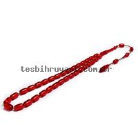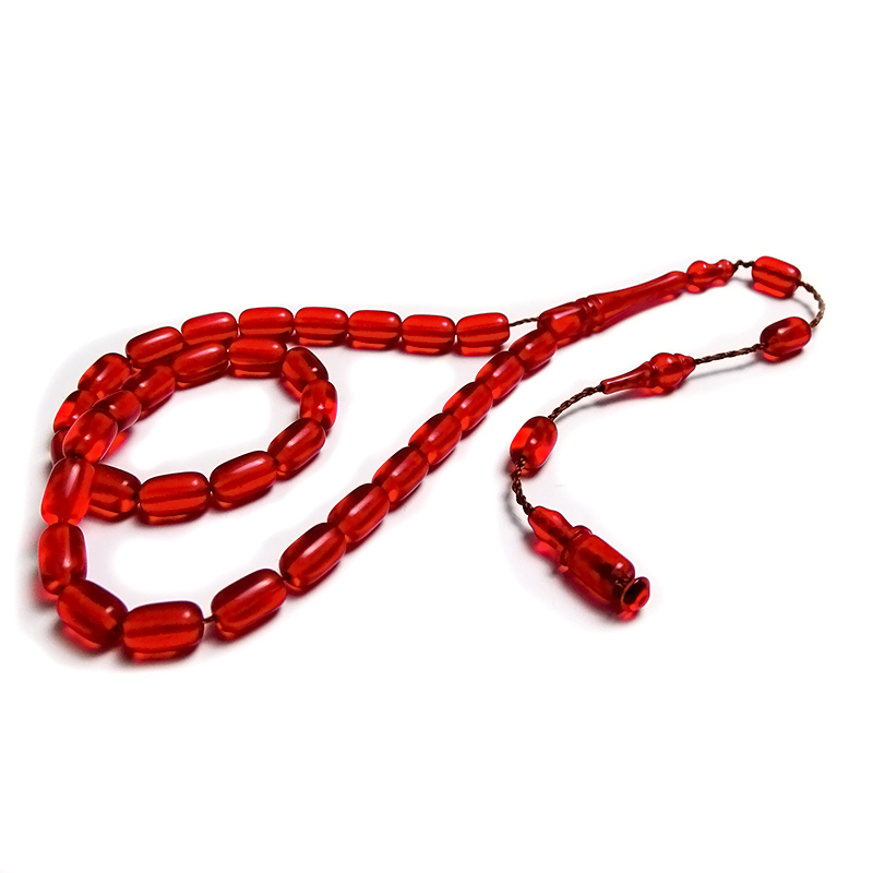 Mini Boy Kırmızı Renk Sıkma Kehribarı Tesbih