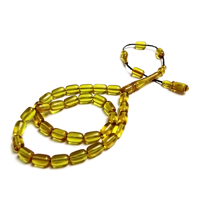 Mini Boy Şeffaf Delim Sarı Renk Sıkma Kehribarı Tesbih