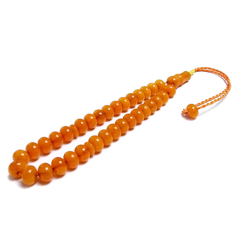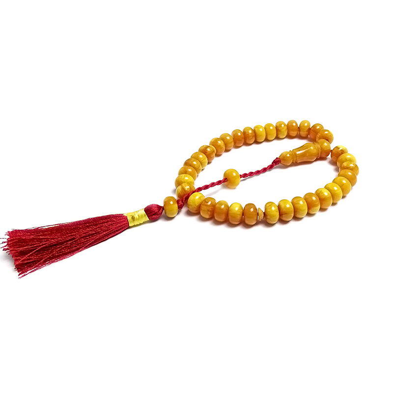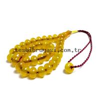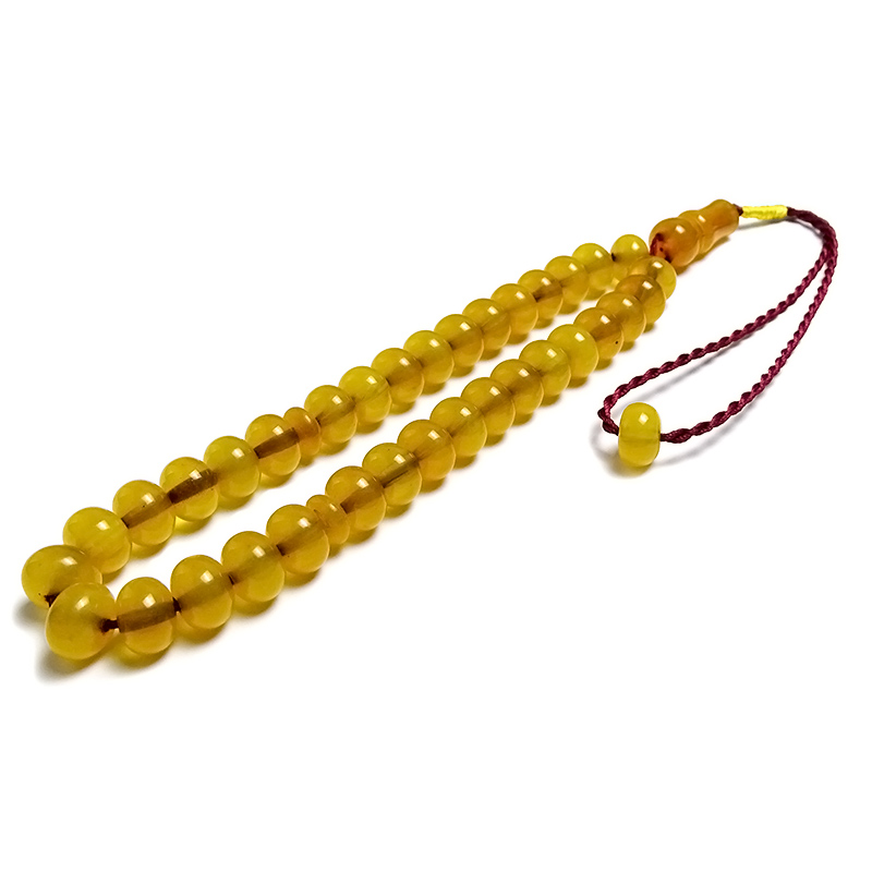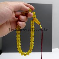 Örgü Tasarımlı Basık Model Sarı Renk Eskitme Kehribarı Tesbih
