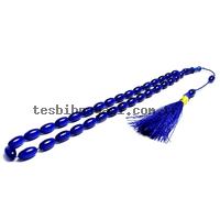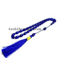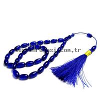 Örgü Tasarımlı Mavi Renk Sıkma Kehribarı Tesbih