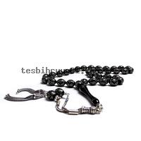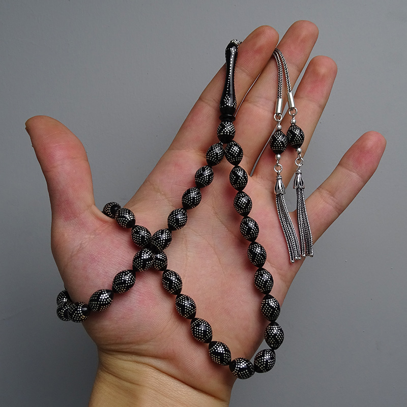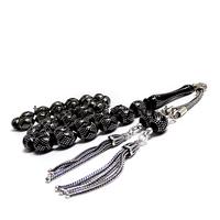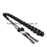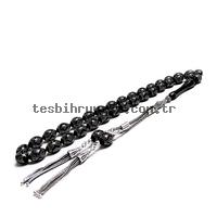 Piramit Ve Baklava Model Gümüş İşlemeli Kömür Karası Kehribar Tesbih