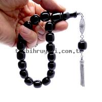 Siyah Eskitme Gümüş Kamçılı Efe Maskot Kehribar Tesbih