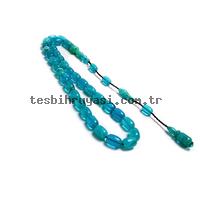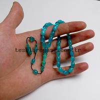Turkuaz Renk Hareli Kapsul Kesim Kehribar Tesbih