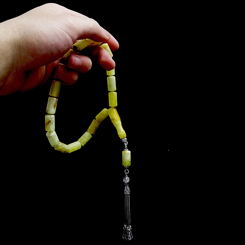 Erzurum Oltu Taşı Tesbih Kapsül Kesim Model Gümüş Püsküllü ve Usta İşçilik