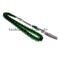 Bafon Tasarımlı Yeşil Renk Sıkma Kehribarı Tesbih
