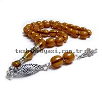 Eskitme Kesim Gümüş Tasarımlı Eskitme Sıkma Kehribarı Tesbih