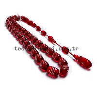 Gümüş Çakımlı Kapsul Kesim Kırmızı Renk Kehribar Tesbih