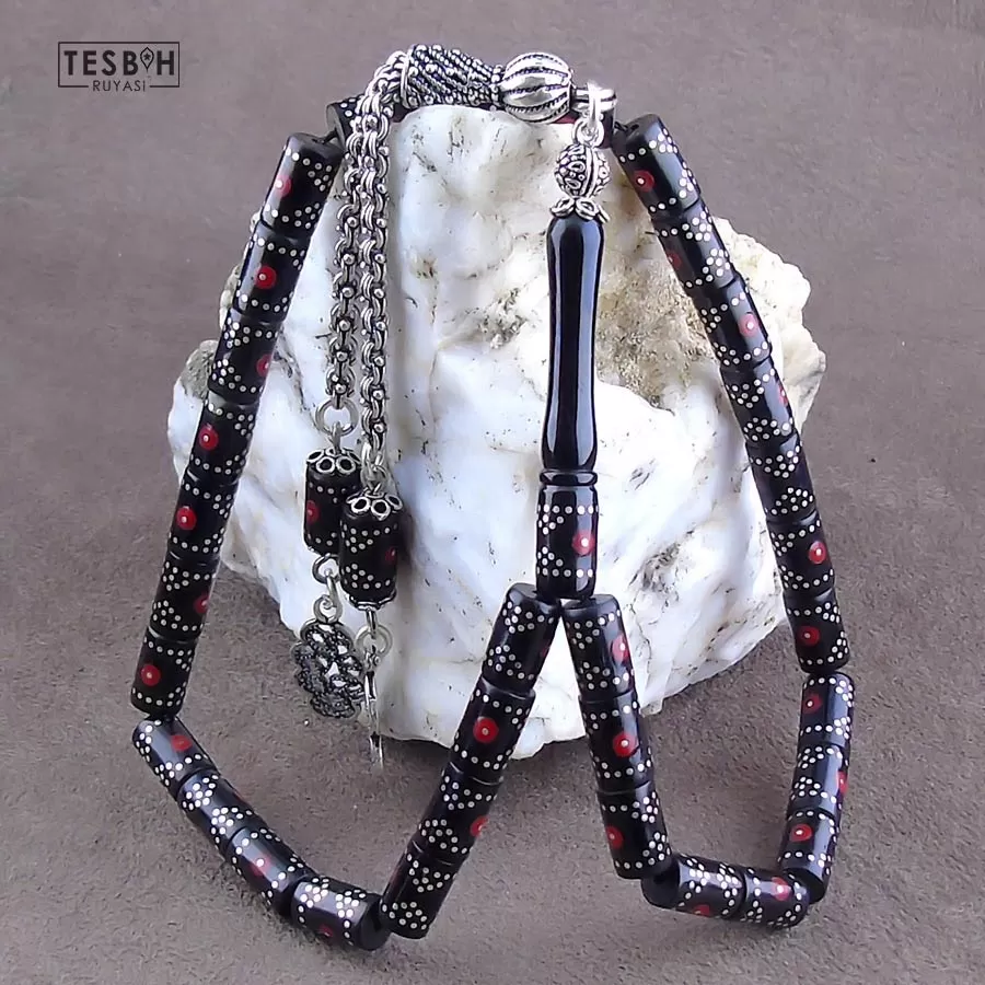Gümüş İşlemeli Kesme Model Oltu taşı Tesbih