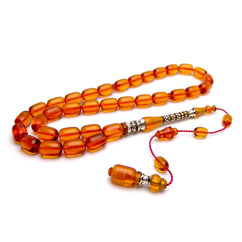 Gümüş Nakkaş İmameli Alev Turuncusu Kehribar Tesbih
