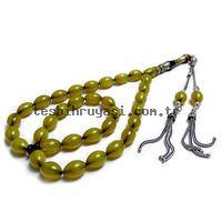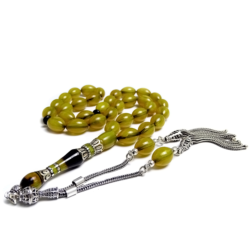 Gümüş Tasarımlı Beyzi Kesim Eskitme Sıkma Kehribarı Tesbih
