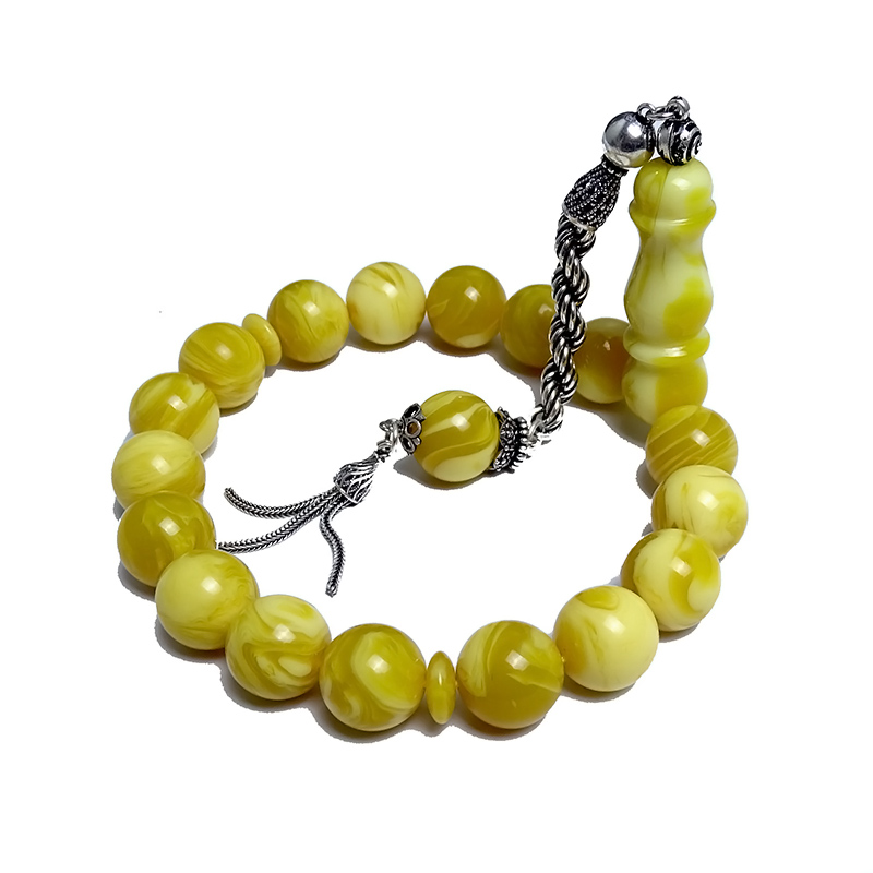 Beyrut Sıkma Kehribar Tesbih Gümüş Kamçılı 15mm Efe Maskot Model