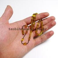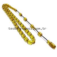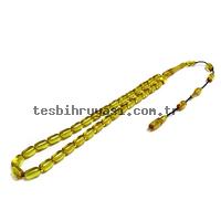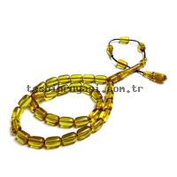 Mini Boy Şeffaf Delim Sarı Renk Sıkma Kehribarı Tesbih
