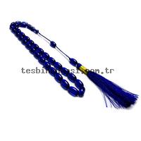 Örgü Tasarımlı Mavi Renk Sıkma Kehribarı Tesbih