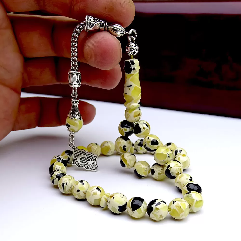 Seramik Mozaik Toz Sıkma Kehribar Tesbih