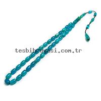Turkuaz Renk Hareli Kapsul Kesim Kehribar Tesbih
