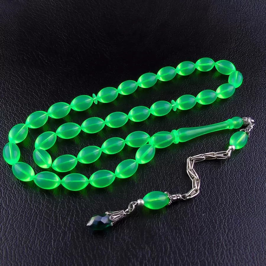 Usta İşçilikli Yeşil Uçak Camı Tesbih