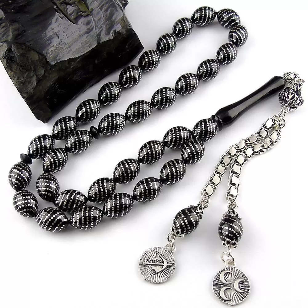 Gümüş Çeşmi İşlemeli Erzurum Oltu Taşı Tesbih